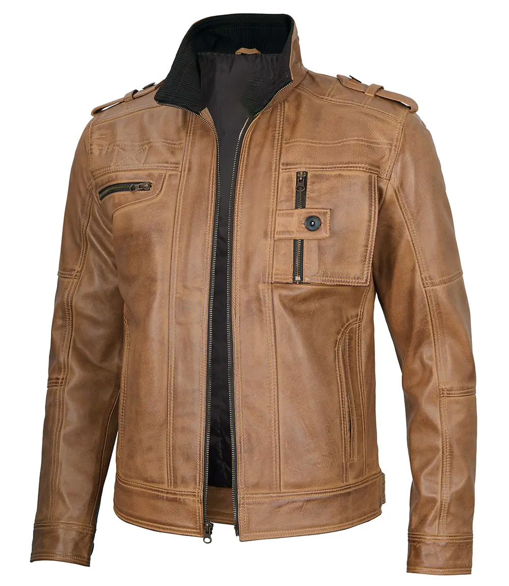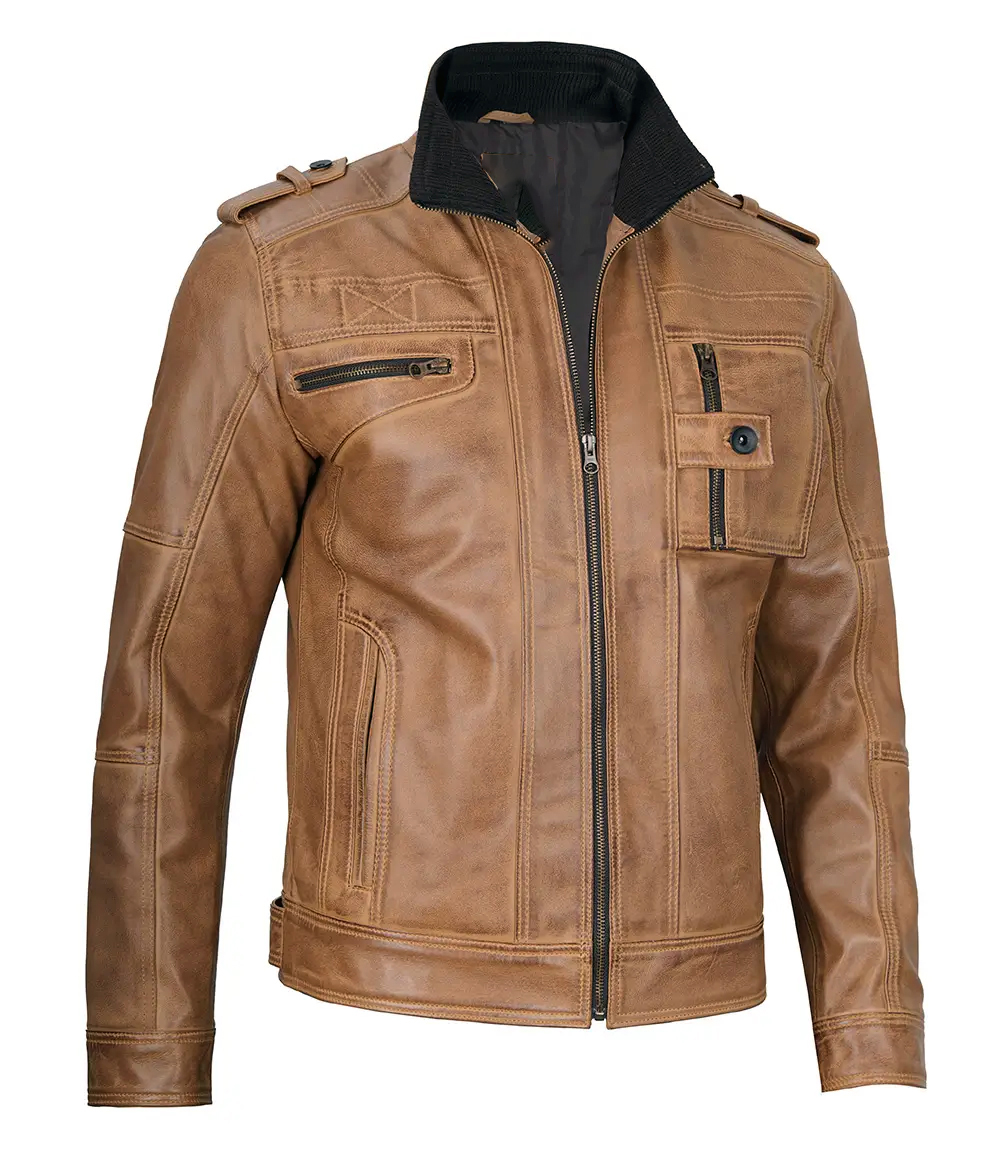 Designed for the modern gentleman, the Camel High Collar Biker Leather Jacket strikes the perfect balance between rugged charm and refined style. Crafted from premium leather in a warm camel brown hue with natural grain texture, it exudes understated elegance and versatile appeal. The high collar and tailored fit add a contemporary edge, while the durable construction promises lasting wear. Ideal for both casual settings and smart occasions, this jacket is a standout layering piece that effortlessly elevates your look.
