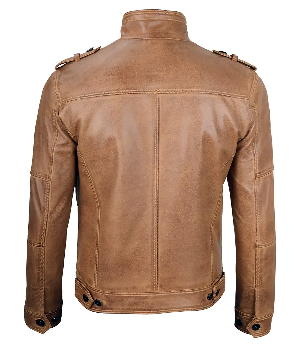 Be the first to review “Camel High Collar Biker Leather Jacket”